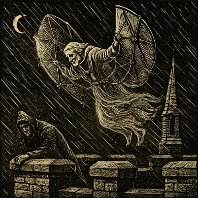 He would appear at the foot of the child’s bed, a silhouette, outlined by the light of the fire’s embers. He carried with him an aged leather bag, marked with Gaelic symbols. This he opened, showing its contents to his unfortunate victim.