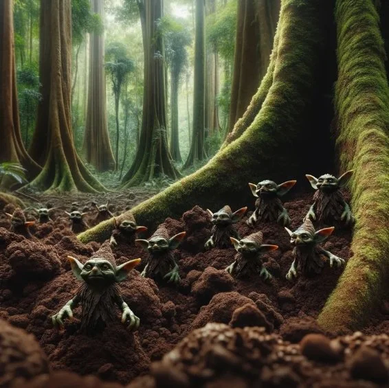 The Gribblies emerge from dining on some poor unsuspecting traveller, to discover they have been evicted... (they don't really resemble what I describe in the story, but this is the best picture I could come up with)